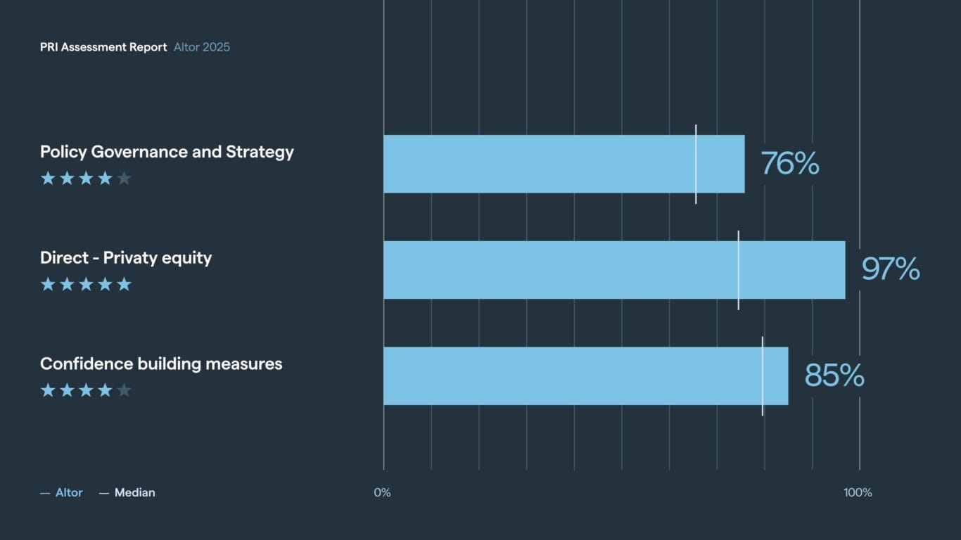 Altor has a comprehensive and quantitative ESG performance monitoring process to annually track progress against our ambitious ESG standards in the RIO policy. Naturally, ESG often plays a big role in strategy retakes of our portfolio companies.